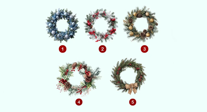 Privește atent aceste cinci coronițe imaginare: una în tonuri reci, una cu energie intensă, o a treia cu strălucire aurie, a patra delicată și o a cincea simplă, curată. Nu e un test științific, ci o invitație de sezon: să lași instinctul să aleagă ceea ce te atrage fără să te justifici. Apoi, păstrează în minte numărul. Fără să te răzgândești.
