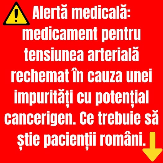 „Românii trebuie să urmeze tratamentele prescrise de medic, dar și să fie atenți la comunicatele oficiale. Întreruperea bruscă a medicației antihipertensive poate fi extrem de periculoasă”, avertizează medicii cardiologi.