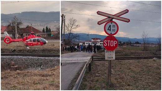 Tragedie la Miercurea Ciuc: o căruță a fost lovită de un tren, incident în urma căruia o femeie însărcinată a murit. Potrivit relatărilor inițiale, în același atelaj se aflau și un bebeluș, doi minori și un bărbat, toți evaluați drept grav răniți. Imaginile distribuite public au mențiunea „Sursa foto: ISU Harghita”.