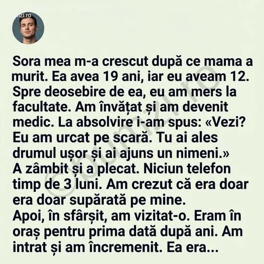 M-au lovit amintirile ca un val. Seară de seară, venea de la muncă ruptă de oboseală și, totuși, îmi punea farfuria cu mâncare în față. Bani puțini, pantofii ei jerpeliți, manualele mele noi. Și mereu aceeași propoziție: „Tu să înveți. Eu mă descurc.”